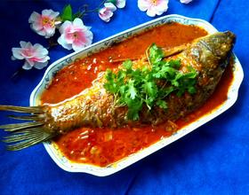 煎鱼的时候,鱼身上沾上干面粉在煎、.鱼皮不容易破损,豆瓣酱本来就很咸放盐之前先尝一下。