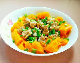 南瓜要选老南瓜,粉,甜。排骨用水焯下可以去