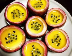 百香果放在榨汁机,用漏勺拿出来汁,添加20克白糖,200ml 奶油,4片鱼胶,放在小火烧味开5分钟就拿下来,等凉了就放在百香果里,然后放在冰箱等布丁冻起来