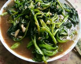 锅热后放蒜,油菜下锅,炒八分熟放调料