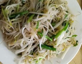 油热了放入葱花,放入绿豆芽大火爆炒。