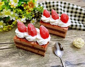 冻好以后把顶部抹上覆盆子果酱.切块.