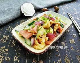 配菜可以用青红椒;火腿要用小火慢煎,葱白放入转中火;蛋液中已加盐,且火腿也是咸的,菜里加盐有个底味就行;最后调味要根据自家口味来定。