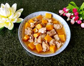 将南瓜和排骨放入大盘,放盐、白糖、生抽、生粉、盐、油和蒜末抓一抓,腌10分钟。