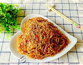 捞起面条用水冲洗过冷河,令面条更爽口。