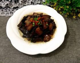 锅中放少许底油,下猪肉煸炒,然后放入生姜 、葱、料酒、生抽、老抽白糖,注入适量清水大火烧开转小火焖煮。