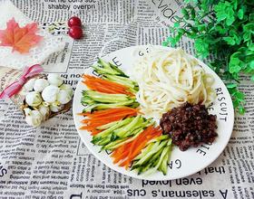 提示:面条的面要和硬,擀时,切时不粘连,放冷水过凉筋道,口感好。香菇炸酱放入水要多炸一会,把酱香炸出香味来。