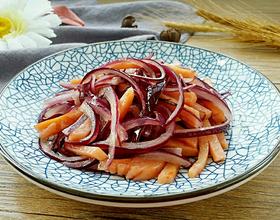 放入洋葱丝快速翻炒变软。