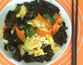 红萝卜片焯水断生,木耳也用烧开的水煮开捞出,煎鸡蛋的油要比平常妙菜的油多一倍,炒出的鸡蛋才会更膨松好吃。我的木耳量是泡发好量。