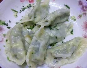 把剁好的姜末跟葱末倒入韭菜里。我做的是三个人的量