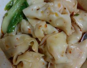 锅内倒入清水烧开,放入包好的抄手和青菜煮2-3分钟,碗内放入辣椒油,少许醋,少许酱油,适量盐,特麻花椒粉和剁好的蒜,将煮好的抄手盛在放好佐料的碗内,撒上葱花。