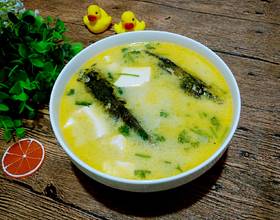 鱼熟了,汤汁浓白,放入盐、胡椒粉,撒上香菜,出锅
