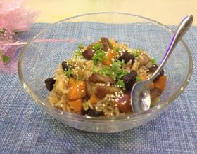 - 3. 锅烧热放油适量,把姜蒜爆香放排骨翻炒直黄金放少许料酒,:盐,一点糖,老抽炒香后,下胡萝卜,香菇、虾仁,炒匀后下点蚝油,再把大米洗干净像煮干饭一样,水可以比平时少一点,因为排骨会有点汁水。再把炒好的排骨倒入大米中按下煮饭键就可以了。