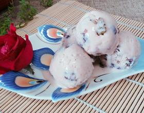 通过定时手工搅拌,能够打撒里面的水晶体,使冰激凌吃起来口感柔滑,吃之前需要室温软化片刻,然后再加入葡萄干、红豆搅拌均匀(可根据自己喜好任意加入坚果)