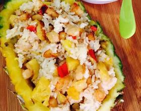 最后用剩下的菠萝外壳来装米饭,摆盘上桌即可!