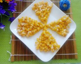 小火倒入玉米粒摊平煎三四分钟(不要碰玉米粒可以晃动锅使玉米粒均匀受热)
