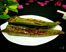看四周都煎黄,爆开,拿出来备把黄豆蒜蓉酱填到辣椒肚子里