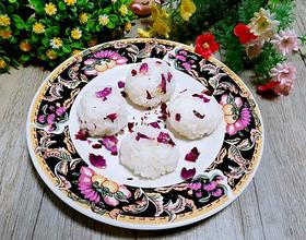 这是做好的玫瑰糯米饭团!有糯米的香甜加上玫瑰花的淡淡香气!好吃!