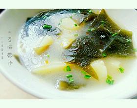 土豆去皮洗净切成小块(或长条)煮好的海带切成片(或丝)备用