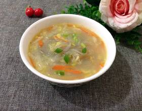 水烧开后下入胡萝卜和粉丝再煮五分钟。