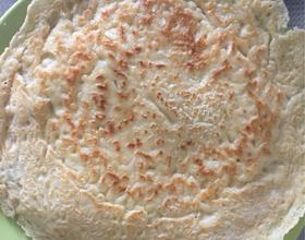 倒入准备好的面糊,摊开。带底面可以随锅晃动的时候再翻面。