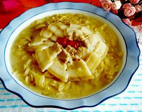 把炖好的酸菜尝口,加鸡精,胡椒粉。