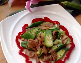 再放入掉好水的秋葵,用旺火翻炒均匀