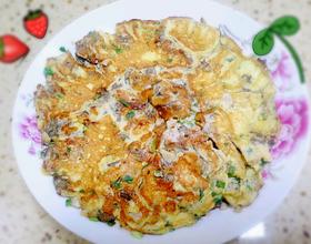倒入打好的蛋汁煎至定型在翻一面煎金黄