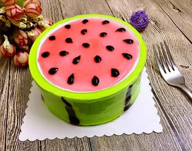 用巧克力线膏挤小豆豆、做西瓜籽.边缘画出纹路