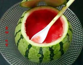 西瓜汁加入熬制冷却的糖水混合搅拌均匀;