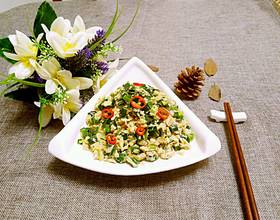 蛋液下锅的时候火要大一点,炒出来的蛋会蓬松很多。蛋液里面有肉末,一定要炒熟了才能出锅。