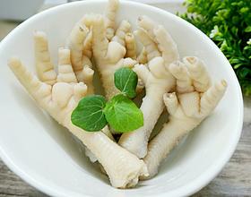 把鸡脚凉水下锅 放入姜片和少许料酒