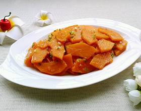 1.南瓜炒的时候加盐,等它熟以后就不用再翻炒了了,这样南瓜就不会被翻炒烂了,就可以美美的装盘。2.南瓜是甜的,会比较容易衬出咸味,所以盐要少加一些。