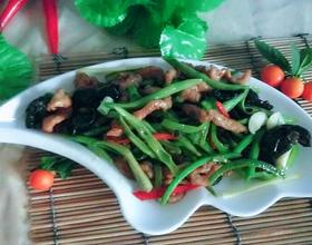 辣椒,木耳,豆角紧接着下锅,加此盐翻炒几下