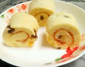 - 9. 在蛋糕上抹上自制的沙拉酱,卷起,用保鲜膜包起固定!放到冰箱冷藏2个小时