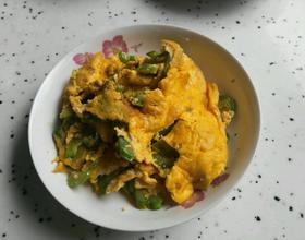 一边搅拌苦瓜一边下锅,下锅之后用小火煎