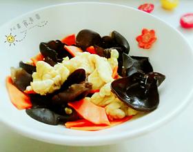 把之前炒好的鸡蛋倒入锅里和胡萝卜木耳一同翻炒均匀