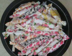 用糯米糖纸和外装糖纸包装好,吃不完可以放入冰箱冷藏