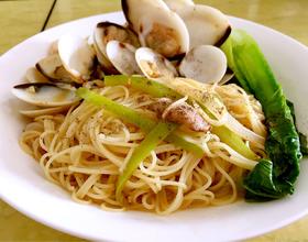 放入待用的面,同时放生抽,糖,料酒,盐炒匀即可,上碟时撒点胡椒粉
