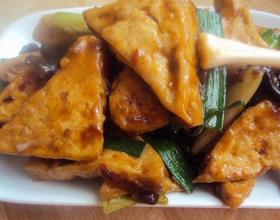 炒锅放较多花生油,烧至六成热放入豆腐。