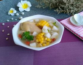 锅里放清水,不放油哦记住!把鸡肉,萝卜,玉米一起下锅。