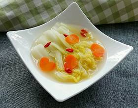 汤开之后加入娃娃菜,胡萝卜煮两分钟左右