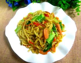下入煮好的面条翻炒,再加入白菜翻炒。