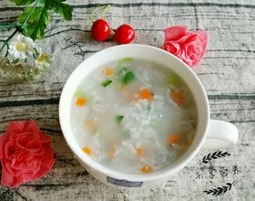 煮好的粥中加入切好的猪肝和蔬菜盖好锅焖几分钟即可
