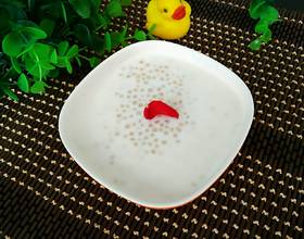 将冷藏好的椰浆牛奶取出,放入西米即可