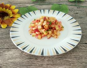 切成丁,放一大勺盐拌匀腌制2小时以上,中途翻一翻,把上面的翻到下面;