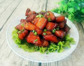 - 8. 下入已经出好油的三层肉均匀裹糖浆,调入适量老抽,生抽,料酒,醋翻炒