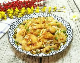 - 6. 把金针菇铺在盘子下层,鱼片铺上面。