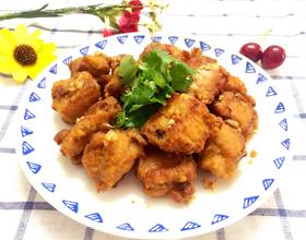 油温六成热,中火排骨入锅炸至微黄捞出,转大火油温稍高一点二次复炸至金黄色捞出控油。