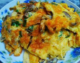 打蛋,鸡蛋+喔尼+一勺蚝油(这个也可以不要)+适量的盐+葱花!搅拌均匀!热好油,下锅煎熟!
